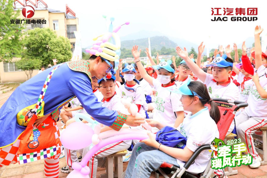 此外,江汽集团还为孩子们带来太阳能风扇帽、纪念品背包和牵牵玩偶等爱心物资,让孩子们在欢乐气氛中感受到浓浓的关爱。